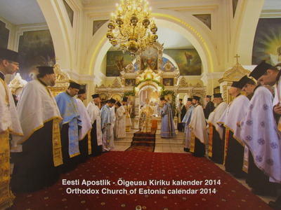 Meie käsitöötoast saab osta Eesti Apostlik-Õigeusu Kiriku 2014 aasta kalendrit. Novembrikuu pildiks on Patriarh Bartolomeus valimas kingitusi meie käsitööpoest. Hind 3.50