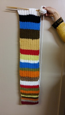 Uus Muhu Noortekeskus sai meie käsitööseltsilt kingituseks ilusa triibulise salli, mis paljude erinevate oskajate poolt kootud! Salli kudumine sai alguse Muhu sügislaadal. Iga kuduja pani oma triibu sisse häid soove ja killukese sooja sügispäikestki. Salli aga jätsime lõpetamata, et nooredki oma kätt proovida saaksid. Soovime noortekeskusele sama ilusaid ja värvilisi päevi nagu meie triibud salli sees! | ||